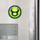 Símbolo Taurus con fondo de círculo amarillo y borde negro en verde degradado (chartreuse). Los verdes y amarillos son colores de primavera, verano, felicidad, optimismo, crecimiento, crianza, creatividad, naturaleza y la magia de la tierra.