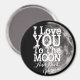 Te Amo A La Luna Y A La Vuelta Con Tu Nombre Fridge Magnet. Imagen de la luna y los textos románticos de personalizable completo "Te amo a la luna y atrás" y tu nombre alrededor del imán. ¡Este hermoso imán personal de luna es totalmente personalizable, agrega tu nombre, textos e imágenes! Un imán romántico muy especial para tu amor, amigo especial o miembro de la familia.