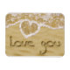 Cartas escritas a mano en la arena junto a burbujas de agua en forma de corazón.