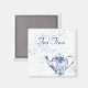 imán frigorífico blanco y azul bonito con una olla de té floral azul y blanco, sobre un fondo giratorio azul pálido, el texto lee Tea Time y se puede personalizar para leer lo que quieras.