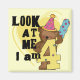 Teddy Bear Tengo 4 camisetas de cuarto cumpleaños, botones, tazas, imanes, tarjetas y otros artículos con texto que dice "¡Mírame, tengo 4 años!"