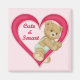 Oso de peluche adorable sentado en un corazón rosado profundo. Este pequeño oso trae un mensaje para el el día de San Valentín o durante todo el año. El texto dice Cute y Smart.