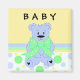 Personalizar este lindo imán con un nombre de bebé, ¡a la madre le encantará! Fondo de color suave en amarillo, azul y verde. Un pequeño y dulce oso de peluche azul con una gran reverencia verde.
