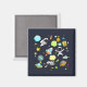 Un imán con un patrón adorable y colorido con todo tipo de elementos temáticos en el espacio ultraterrestre. Las imágenes incluyen astronautas flotando en sus trajes blancos. Estrellas y planetas y pequeños buques de cohetes, naves espaciales y satélites frescos. Diseño divertido y loco.