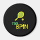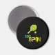 Retro, pop, colorida creación de silueta de raqueta de tenis, Redondo Magnet. Tema especial del coloreado verde y amarillo, con un simple pero elegante icono de estilo artístico. Pop y estilo retro, diseño único.