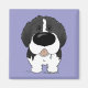 Terranova de nariz grande y adorable con un estanque de agua a sus pies sobre un imán. El color de fondo y el texto se pueden cambiar. Simplemente haga clic en el botón Personalizar.