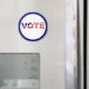 VOTE Texto rellenado con colores de marca. Distintivo.