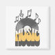 Ilustracion de diseño de texto "Music" de estilo retro con grabación de vinilo y decoración de notas musicales