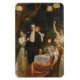 This design features a painting by the English artist and writer John Collier (1850–1934). "The Garden of Armida" is a richly atmospheric genre painting that unfolds in a moonlit garden illuminated by the warm glow of hanging lanterns. Rather than depicting the mythological sorceress Armida of Torquato Tasso’s epic poem, Collier reimagines the title of the painting as a metaphor for a social, sensual and faintly theatrical setting. The garden becomes a stage for human interaction, charged with emotion and subtle tension. The soft radiance of the lanterns gives the entire scene an intimate, almost dreamlike quality, drawing the viewer into a world that feels both inviting yet faintly otherworldly. At the center of the composition stands a solemn, formally dressed man whose expression contrasts sharply with the lively energy surrounding him. He is flanked by four women, each dressed in elegant gowns, whose gestures and body language create a sense of closeness and festivity. One woman raises her glass in a light-hearted toast, capturing the spirit of celebration; another leans comfortably against the man’s shoulder as though familiar with him; the third rests her arm gently around him in an affectionate, possibly flirtatious manner; and the fourth woman is toasting her glass a few steps away. Their interactions form a center of movement and attention around the otherwise reserved central figure, heightening the emotional complexity of the scene. The setting contributes significantly to the painting’s mood. Behind the figures, the garden recedes into lush darkness, its forms only hinted at by the dim lantern light. This shadowy backdrop emphasizes the brilliant colors and textures of the characters’ clothing and the warm illumination that binds them together. The contrast between the dark, mysterious surroundings and the glowing group creates an atmosphere of Romantic allure, suggesting a world suspended between celebration and introspection, public festivity and private feeling. It is a moment of social intimacy set against the quiet mystery of a night garden, inviting viewers to wonder about the relationships among the figures and the unspoken stories that unfold in the warm lantern light. "The Garden of Armida" was originally painted by John Collier circa 1899.