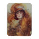 The Lure Of The Green Eyes by English artist William Henri Barribal. Art Deco vintage illustration depicting an elegant young lady from the roaring twenties with luring green eyes and bright green gemstones jewelry, fashionably dressed in fox brown fur and with big feathers on her hat.
