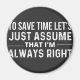 para ahorrar tiempo asumamos que siempre tengo razón, para ahorrar algún tiempo, asumamos, siempre tengo razón, chiste del humor, sarcasmo, futuro gerente de banco, gerente de banco retirado, gerentes de bancos, me encanta la economía, me gradué, me inspiro para el gerente de banco local soy oficial de policía local, im y, para ahorrar tiempo, asumir, nunca me equivoco, solo asumir, ahorrar tiempo, una vez