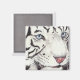 Una vista de primer plano de un tigre blanco adorna este encantador imán de arte. Creado a partir de las inspiraciones artísticas de Mona Majorowicz de la Galería de Caras Silvestres.