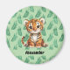 Imán Tigre de Dibujos Animados Lindo en Hojas Tropicale