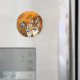 Dos tigres naranjas bajo un imán frigorífico de rayos solares dorados