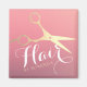 Plantillas de imán personalizadas para salón de belleza / peluquería / estilista / artistas de maquillaje / estilistas / planificadores de bodas / planificadores de eventos / consultores / dueños de boutique / fashionistas - Tijeras de oro falso moderno sobre fondo degradado rosa.