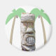 Tiki de cumpleaños con palmeras, diseño de playa tropical.