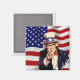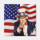 Imán cuadrado con una imagen vintage de los años 40 del Tío Sam en la bandera de Estados Unidos. Vea toda la colección de Magnet Patriótico de los años 40 en los TOUCHES ESPECIALES | Sección de favoritos de partido.