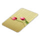 Noble pergamino de oro con tipografía "Happy Easter" y 2 tulipanes rosados.