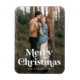 Elegante imán de vacaciones de moda que muestra tu foto vertical de sangre completa con "Feliz Navidad" en una superposición de tipografía blanca de estilo retro. Personalice el imán de fotos de vacaciones agregando su nombre/nombre de negocio, el año u otro texto personalizado. Diseñado para coordinar con nuestra colección de tarjetas de Navidades de tipografía retro.