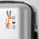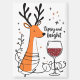 A funny and cheerful Christmas holiday design showcases a reindeer wrapped in festive lights, holding a glass of red wine, surrounded by colorful stars. The handwritten text says, "Tipsy and Bright." This delightful design is available on a variety of products, making it a perfect gift for wine lovers.