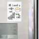 Un imán lindo y gracioso que dice Todo lo que necesito es café y mi gato. Hace una gran idea de regalo de novedad para alguien que es un entusiasta del café y ama a los gatos.