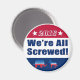 ¿No están contentos con ninguno de los candidatos para las elecciones 2016? Entonces este diseño es para ti. Este diseño circular presenta secciones rojas, blancas y azules. La parte roja superior tiene el año 2016 entre dos estrellas todas blancas delineadas en azul. La sección central blanca tiene un texto que dice, "¡Todos estamos jodidos!" en azul delineado en rojo, y la parte azul inferior tiene un burro al estilo demócrata y un elefante al estilo republicano delineado en blanco.