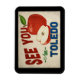 Un encantador imán de refrigerador de la pared de viaje de Toledo Ohio con una hermosa manzana roja, junto con un divertido texto de estilo retro que dice, "Nos vemos en Toledo"