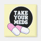 ¿Quién no olvida sus pastillas a veces? Este es un recordatorio gentil y juguetón para tomar esas medicinas. Pon este imán en el frigorífico o pizarra electrónica para ayudar a seguir el camino. ¡Tienes esto!