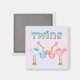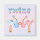 Regalos únicos de Baby Shower para la nueva mamá o mamá. Bebés, invitaciones, postales, llaveros, imanes, favores de fiesta, tazas de sake y más. Cada elemento se puede personalizar con nombres y fechas. Este diseño está diseñado para un chica y un niño gemelo, con colores rosa y azul.