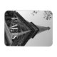 Aquí está la Torre Eiffel de París, Francia en blanco y negro. La foto nos da una interesante perspectiva de la famosa atracción.