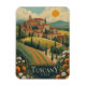 Disfrute del encanto de la Toscana con este poster de arte de viajes. Sumérjase en un pintoresco pueblo italiano bañado por el cálido resplandor de una puesta de sol, con suaves colinas onduladas y vibrantes paisajes otoñales. Ideal para la decoración en casa o como regalo para los amantes de los viajes, esta obra de arte captura la serena e intemporal belleza de la Toscana.