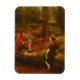 This design features a painting by the British Pre-Raphaelite artist John Collier (1850–1934). It is a richly detailed, character-driven painting that brings to life two secondary figures from Shakespeare’s play "As You Like It". Collier focuses on the unlikely romantic pairing between Touchstone, the court jester, and Audrey, a simple shepherdess. In the play, their relationship is deliberately unpoetic and humorous, a counterpoint to the idealized romances of the main characters. Collier translates and transports this contrast into visual form, creating a portrait of two people whose temperaments, social backgrounds, and attitudes toward love could hardly be more different. Touchstone is rendered with an air of intelligence and sly wit. His brightly colored jester’s costume, complete with elaborate patterns and bold tones, immediately signals his role as a fool, yet his expression also seems to make clear that he is the sharpest observer on the stage. Collier captures him in a moment of poised confidence, leaning slightly toward Audrey with a knowing, almost teasing gaze. The jester’s posture and facial expression suggest that he sees through the absurdities of both courtly and pastoral life, and that his courtship of Audrey is an amused, playful act as much as a genuine pursuit. Audrey, by contrast, is painted with simplicity and sincerity. Her clothing is plain and rustic, and Collier softens her features to convey her innocence and straightforward nature. She sits quietly beside Touchstone, her expression gentle, almost timid. Collier does not exaggerate her simplicity; instead, he allows her modesty to speak for itself, creating a character who is kind, humble and earnest in ways completely unlike her companion. Her presence in the painting brings a sense of grounded calm that balances Touchstone’s clever and playful energy. The setting, likely the Forest of Arden, is depicted with naturalistic detail, providing a peaceful woodland backdrop. This pastoral environment evokes the play’s themes of rustic escape and transformation while also highlighting the tension between courtly artifice (embodied by Touchstone) and rural simplicity (represented by Audrey). Touchstone’s wit and performative personality are seen beside Audrey’s innocence and sincerity, creating a relationship that is both charming and comically mismatched. Through careful characterization, detailed costuming, and a harmonious natural setting, Collier translates Shakespeare’s comic subplot into a vivid and thoughtfully composed image that highlights the enduring appeal of these two unconventional lovers. The original artwork of "Touchstone and Audrey" was painted by John Collier in 1890.