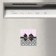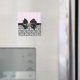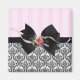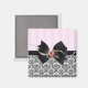 Imán cuadrado con una imagen de rayas rosadas sobre la mitad superior y un diseño barroco francés blanco y negro en la parte inferior dividido por una cinta negra coronada por un gran arco negro con un detalle rosa rosado y cinta. Ver toda la colección de Birthday Magnet en los TOUCHES ESPECIALES | Sección de favoritos de partido. Este producto no está asociado ni afiliado al titular del derecho de autor original.
