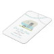 Ahorre el imán boda de fecha con un ilustracion de remolque vintage azul con una caja de ventana llena de flores. Banda azul y gris en la parte superior. Buscar elementos coincidentes en el paquete de Jill.