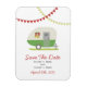 Un ahorre el imán boda de fecha con un ilustracion de remolque de época verde con una caja de ventana llena de flores de colores. El lienzo rojo y amarillo en la parte superior. Buscar elementos coincidentes en el paquete de Jill.