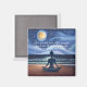 Yoga Fitness Studio / Instructor de Meditación / Entrenador personal / Entrenador de vida / Healer / Reiki Master / Massage Therapy Magnet Plantillas - Mujer tranquila meditando silueta de noche bajo el cielo de la luna de fantasía en la playa del Océano tranquilo.
