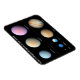 Ilustracion que representa a los tres planetas gigantes orbitando la estrella tipo Sol Kepler 51 en comparación con algunos de los planetas de nuestro sistema solar. Todos estos planetas son aproximadamente del tamaño de Júpiter, pero una fracción muy pequeña de su masa. Esto significa que los planetas tienen una densidad extraordinariamente baja, más parecida a la de la espuma de poliestireno que a la roca o el agua. Los planetas pueden haberse formado mucho más lejos de su estrella y haber emigrado hacia adentro. Ahora sus atmósferas infladas de hidrógeno/helio están sangrando en el espacio. Con el tiempo, se podrían dejar atrás planetas mucho más pequeños. Los colores de este ilustracion son imaginarios.