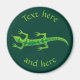 Icono de lagarto verde con formas tribales en el cuerpo. Dos campos de texto personalizado en círculo.