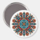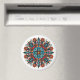 Imán psicodélico trippy con mandala de hongo groovy con ojos y flores. El estilo de este ilustracion es muy original y se parece a un arte hippie de los años 60.