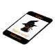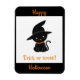 Un gatito negro adorable con el gorra de una bruja aparece en este imán de Halloween. Con el mensaje "¡Feliz Halloween y Truco o vístete!", este imán es perfecto para decorar Halloween o regalar como regalo. Este diseño también está disponible como bolso de tote y tarjeta de saludo.