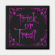 Un gótico mágico borde con cráneos y "truco o tratamiento" en morado envenenado. Para tu decoración de Halloween o tu fiesta de Halloween.