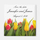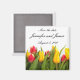 Una fotografía de un hermoso grupo de tulipanes es la característica de esto salvar el imán boda de fecha. El script es el personalizable de sus nombres, fechas y cualquier otra información de boda que elija poner en él.