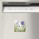 Original pintura acuática de Sandra Gale, con varias flores de tulipán violeta y violeta que se balancean en el aire primaveral del jardín. Esta pintura ligeramente abstracta sugiere vagamente flores acuosas brillantes utilizando sólo algunos acuarelas transparentes. Perfecto para quien quiera un pequeño ascensor de primavera floral durante todo el año.