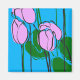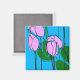 Imán Tulipanes rosados dibujados a mano en azul cielo