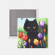 Imán Tulips Cute Black Cat Butfly Creationarts