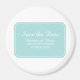 Boda moderna y de moda Sencillamente Elegante Ahorre el imán de fecha con un diseño elegante de boleto turquesa. Este diseño clásico y elegante es fácil de personalizar con sus detalles bodas. Para obtener más opciones de personalización, haga clic en Personalizar.