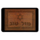 Presenta un "tallado de madera viejo" generado por computadora de un Magen David (Estrella de David), texto hebreo que dice "Mazel Tov", y una frontera floral. Añade tu propio texto. También puedo modificar esta imagen para incluir texto "de madera tallada" en hebreo o inglés. Mientras que mazel tov literalmente se traduce como "buena suerte", como lo usan los judíos significa "buena suerte ha ocurrido" o "tu fortuna ha sido buena" y es un reconocimiento de este hecho (es decir, "afortunado"). La frase "¡mazel tov!" es paralela al uso de la frase "¡felicitaciones!" y transmite más o menos que "¡Me alegra que esto te haya pasado bien!" Mientras que la pronunciación yiddish de mazel tiene el énfasis en la primera sílaba, la palabra hebrea moderna "mazal" tiene el énfasis en la última sílaba, como es habitual en el hebreo moderno.