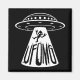 Ilustracion personalizado vectorial de un OVNI secuestrando a una persona que piensa que los extraterrestres rompen con el texto de la UFOMG. Etiquetas: OVNI, OMG, no identificado, volando, objeto, oh, Dios mío, espacio, nave espacial, alien, marciano, personalizado, diablo, cuernos, secuestro, cuarto, tipo, humor, platillo