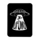 Ilustracion personalizado vectorial de un OVNI secuestrando a una persona que piensa que los extraterrestres rompen con el texto de la UFOMG. Etiquetas: OVNI, OMG, no identificado, volando, objeto, oh, Dios mío, espacio, nave espacial, alien, marciano, personalizado, diablo, cuernos, secuestro, cuarto, tipo, humor, platillo