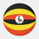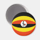 La bandera de Uganda se ha ajustado cuidadosamente a la forma circular de este imán. Una manera decorativa de promover la cultura ugandesa.